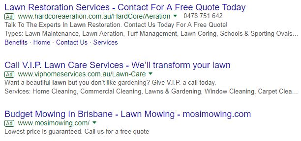 For example, when you Google “lawn service”, you are presented with the following ads: