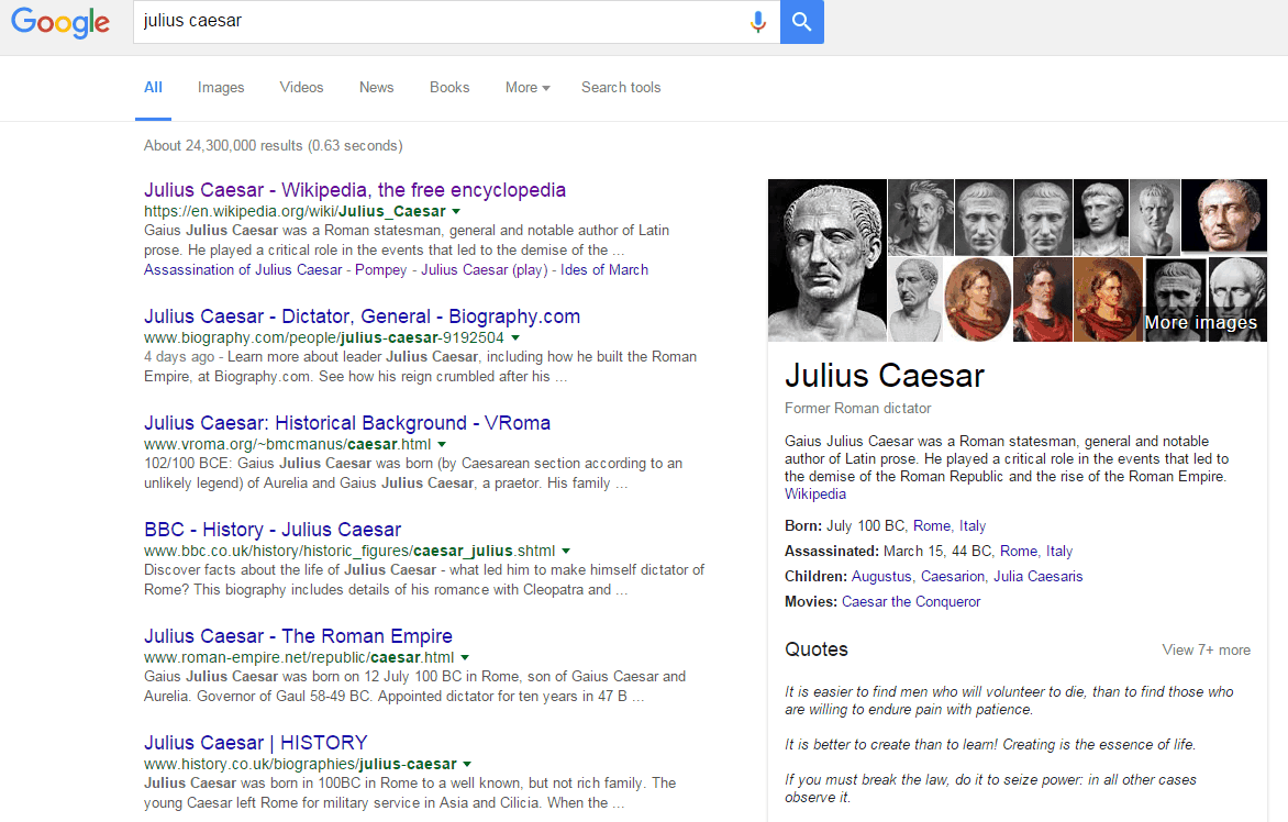 Alternatively, Google may show you a knowledge graph related to your search terms. These knowledge graphs have appeared in Google for a long time, but they now have the space of the former right hand side ads available to be displayed in. A knowledge graph is a tool Google uses to show you information that can be quickly and easily displayed without clicking through to an external website. Unit converters and Wikipedia snippets are both examples of Knowledge graphs.