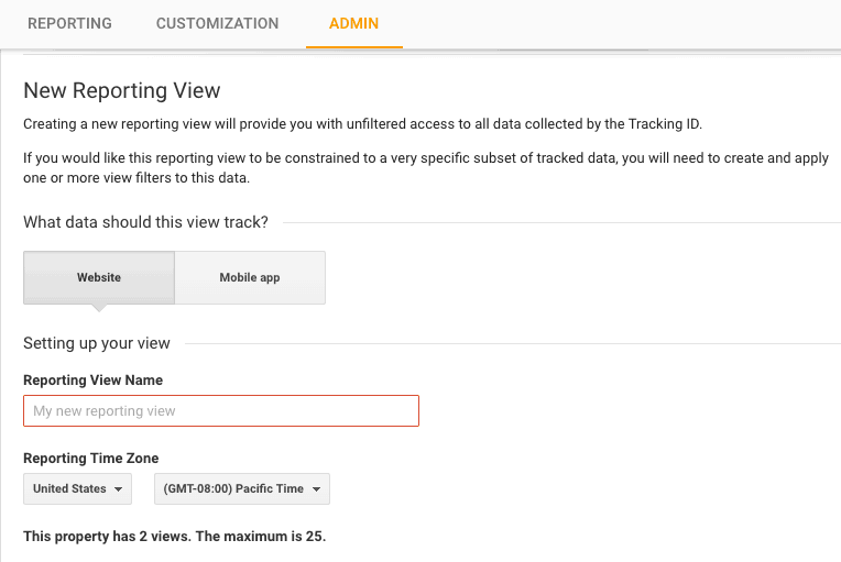 For accurate reporting, Google recommends you create three different views per property. These are reporting view, test view and unfiltered view. This means you can preserve your unfiltered data and make sure you don’t lose any valuable data.