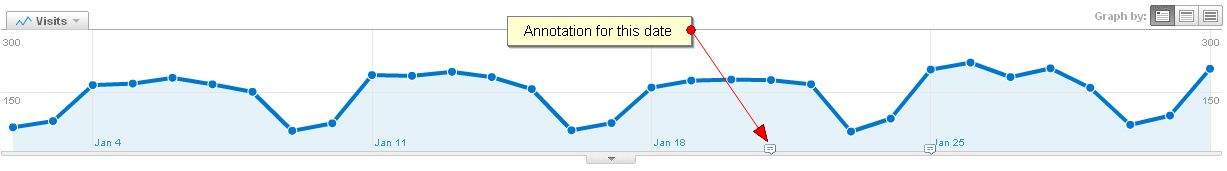 To do this, you first need to view a data graph from one of your Google Analytics reports. Click on the arrow below the data graph, and then click Create New Annotation. This allows you to document your annotation. When accessing your data in the future, you’ll be able to see an annotation mark, which can be clicked on to see the description. This will help you record what changes you made and how that has changed the website traffic.