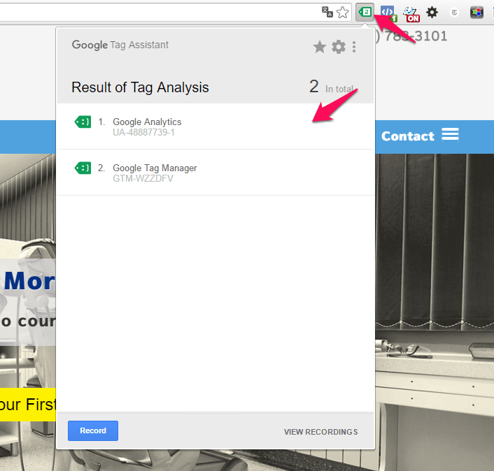 To find out if you’re using the right tracking code, install Google Tag Assistant Companion to your Google Chrome browser. Once installed, visit your website, select Tag Assistant and reload the page. You will then be able to see this result:
