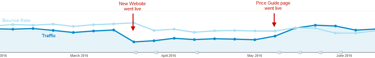 With the improvements our web team made to the website, the average load time for the Price Guide page had decreased by almost two seconds and the bounce rate was halved. The traffic had recovered to around the same as before the website went live but with a significantly lower bounce rate. Since the alteration, the client has been experiencing more engaged users, resulting in an increase in conversions. The Price Guide page has returned to being the second most visited page of the entire website, and more importantly is generating strong leads for the business.