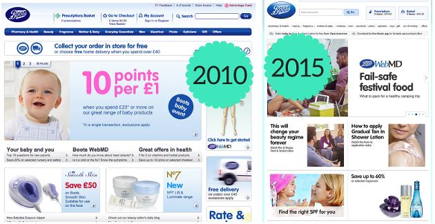 You only have to compare websites from a few years ago to how they look now to see the influence of content marketing. Compare online retailer Boots’ website from 2010 to 2015:
