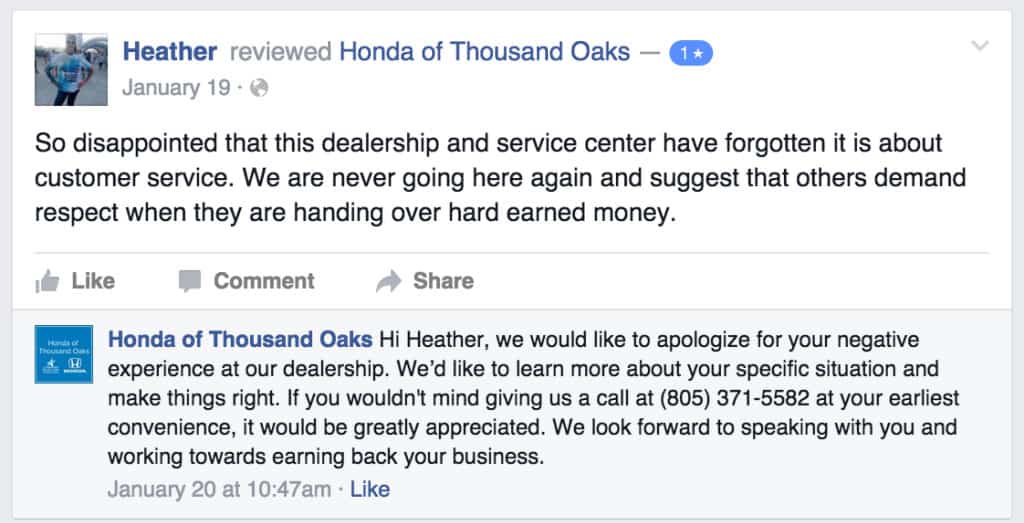 Some people decide the best type of action is to just ignore the negative review. After all, you don’t want to start a fight with someone on your social media page, so why not just ignore their comment?