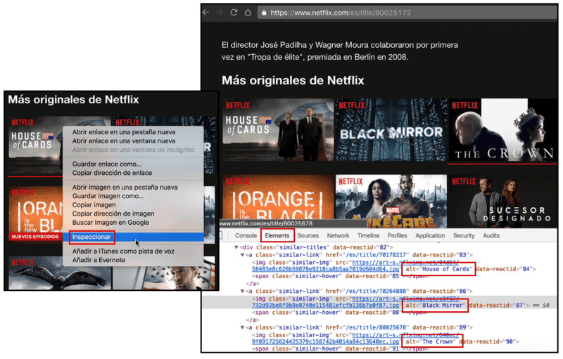 The Elements tab also allows you to verify your images ALT description. Simply right click on any image and select “inspect.” Coding will display showing the ALT description.