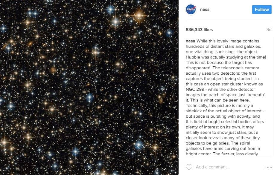 Those who love space - make sure you’re following NASA’s Instagram account. Not only will you find amazing, high-quality photographs and videos of space, they also have lengthy descriptions which can be quite interesting and educational. They will often tag the International Space Station or other astronauts, giving you the chance to follow them to have even more photographs of space in your Instagram feed.