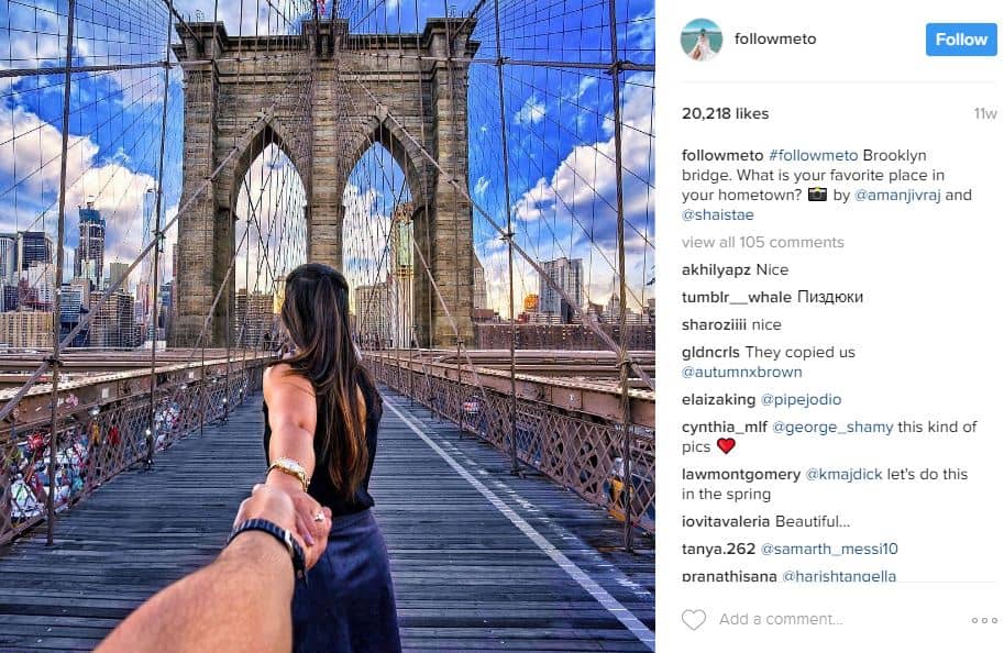 Those photos you’ve seen of a woman leading a man by the hand to a new travel destination? That originated from the #FollowMeTo project, created by Murad and Nataly. The account doesn’t only post photos of people being led by their arm. They also post photographs from people’s travels all around the world. The easy concept of the photograph, and the fact they have their own branded hashtag, makes it easy for people to take their own photograph and post it on their accounts.