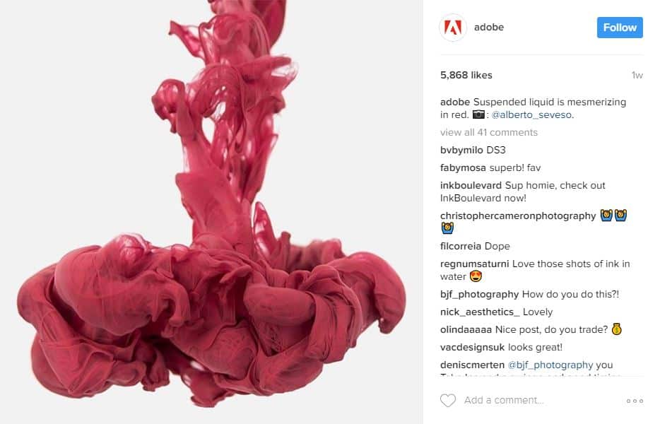 Adobe features photographs that are exclusively by its community. It has its own hashtag, which changes depending on the theme of the month. February’s theme was #Adobe_SeeingRed, which encourages users to submit red themed photographs. This is a great space to get inspired, while also showcasing your own work. Only posting the community’s photos is a great way to increase engagement.