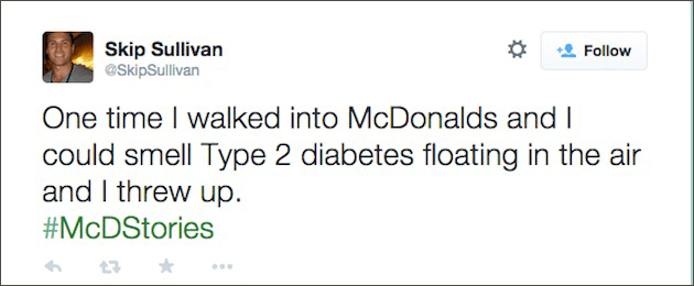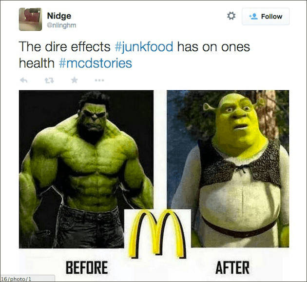 However, the hashtag quickly went downhill, and users shared their bad McDonald’s stories, fast food facts and sarcastic comments: