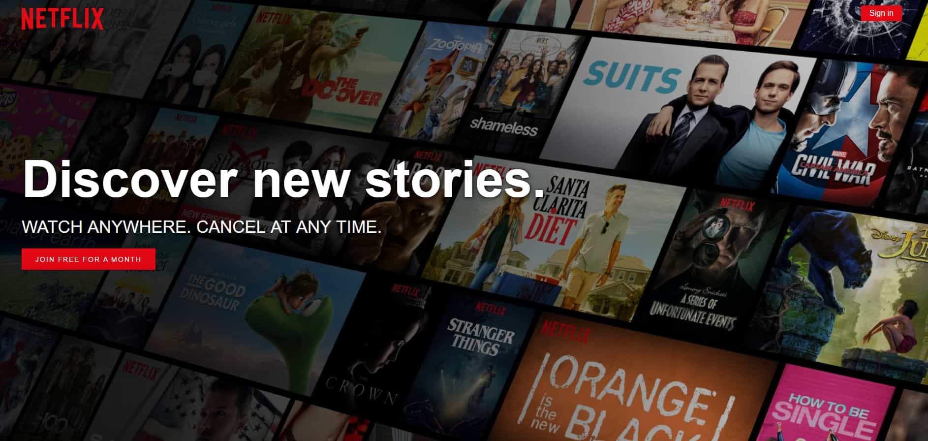 Netflix is an example of a website that has a clear call to action. Best of all, the call to action is to join free for a month, rather than directing new customers to pay right away: