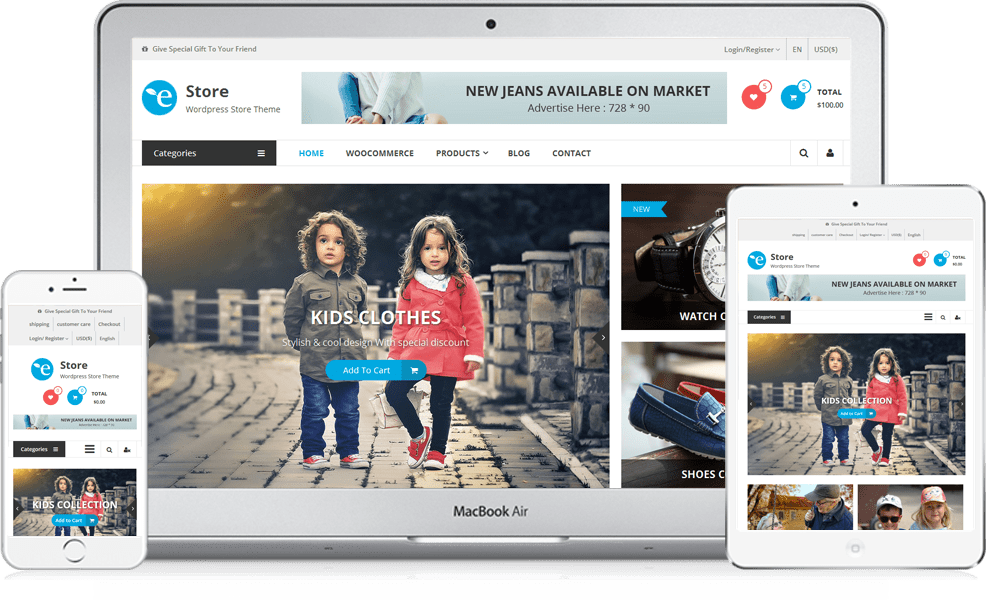 The most popular WooCommerce/ecommerce style WordPress theme at wordpress.org is eStore, which is installed on over 10,000 websites. Not only is the theme WooCommerce compatible, it integrates with the YITH WooCommerce Wishlist plugin. If you’re looking to attract more customers and sell products, you will be able to do so with ease using the eStore WordPress theme.