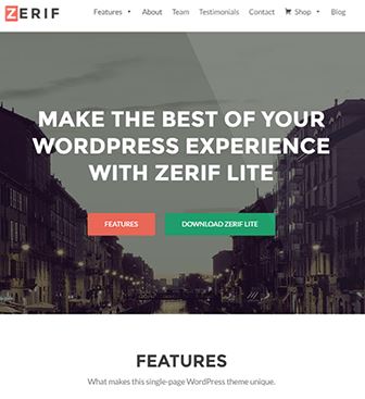 Zerif Lite is a single page website with customisable sections, it’s incredibly easy to use. The theme uses a live customizer making it the easiest to use on our list and recommended for people who are new to WordPress. It is also listed as one of the top 10 most used free themes (which can be a good and a bad thing!). The theme itself looks really great and is optimized well for speed with compatibility with the most used caching and minification plugins. One of the things we like most about Zerif is they have really great support. There are multiple video tutorials that will help you on your way and there is also great documentation with forums.