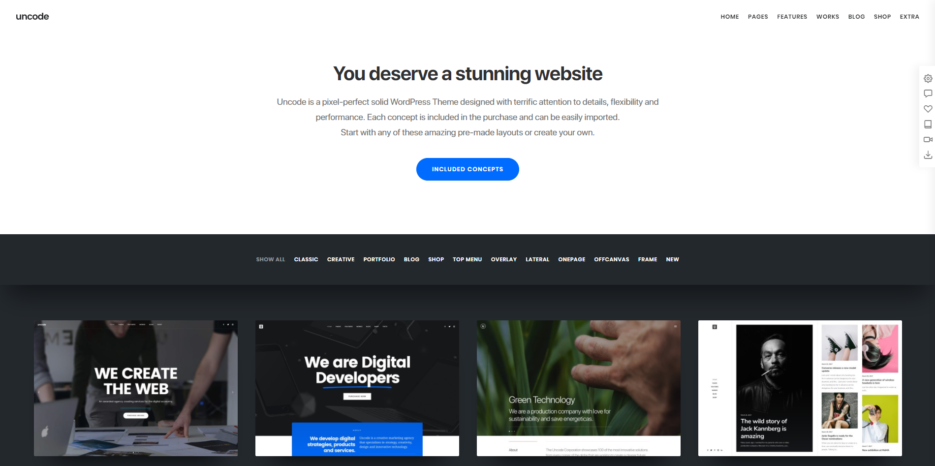 Uncode is one of the most sophisticated WordPress themes available in 2017. It has a striking design that is colorful and exciting. No code is needed to create a highly interactive site that loads quickly. Uncode lets your brand shine with help from customisable typographical options and amazing color schemes. It is a theme that always seems fresh. No wonder it has been so successful.