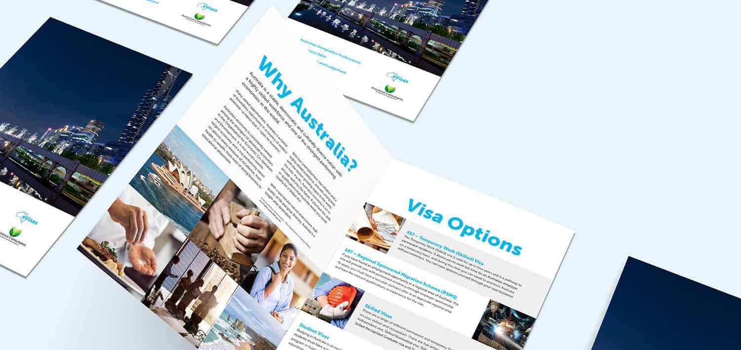 Since we established a good relationship with eVisas, they got in touch a short time later for more print work. They needed brochures and an advertisement at short notice to build brand recognition at a couple of upcoming events.