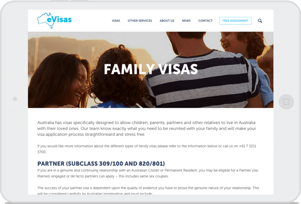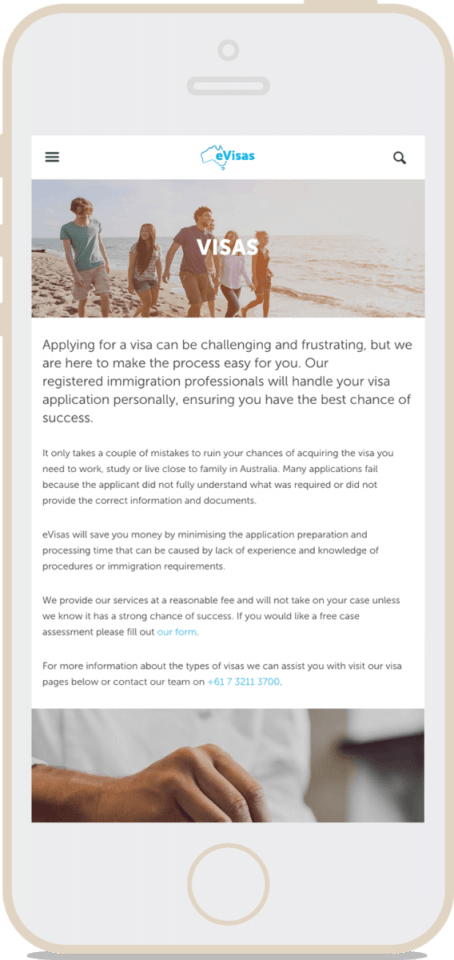 Our copywriters wrote the core pages for the website, including the services pages, Home page and About Us page. Due to the complexity of visas, the content needed to be clear while highlighting the benefits of hiring eVisas to assist with the process.